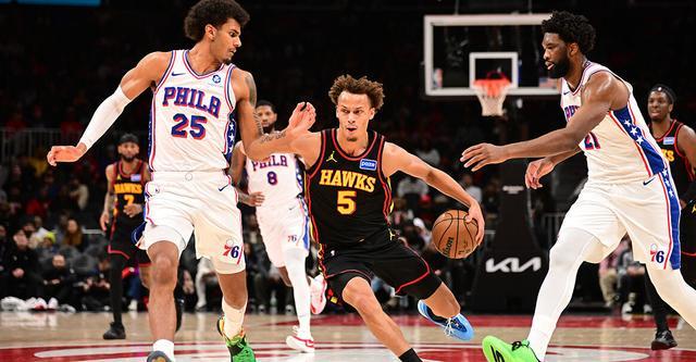 北京时间12月15日,NBA常规赛再战一场,格里姆斯错失绝平三分,老鹰主场120-117险胜76人避免连败。此役丹尼尔斯27分10篮板4助攻,奥孔古20分15篮板,杰伦-约翰逊12分10篮板12助攻,连续4场比赛斩获三双;76人队无缘连胜,乔治空砍35分,埃奇库姆26分6篮板,恩比德22分14篮板,格里姆斯14分7助攻。